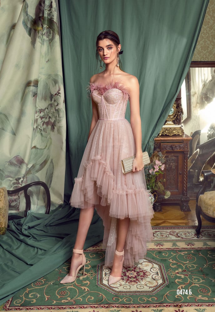 إذا كنت تبحثين عن شيء رائع لارتدائه في مناسبتك الخاصة القادمة فإن فستان بدون حمالات بقصة القلب مع ريش على قصة الصدر كوكتيل هو ما يناسبك يتميز هذا المظهر الجميل بتصميم الأزياء الراقية بجزء علوي بقصة الكورسيه و قماش من الدانتيل وطبقة من نقاط البولكا مع حاشية مكشكشة أعلى التنورة القصيرة أو الشورت من الدانتيل. مزيج من اللمسات الرقيقة من الدانتيل والريش يمنح هذا المظهر ملمسًا جميلاً!