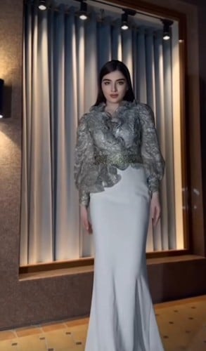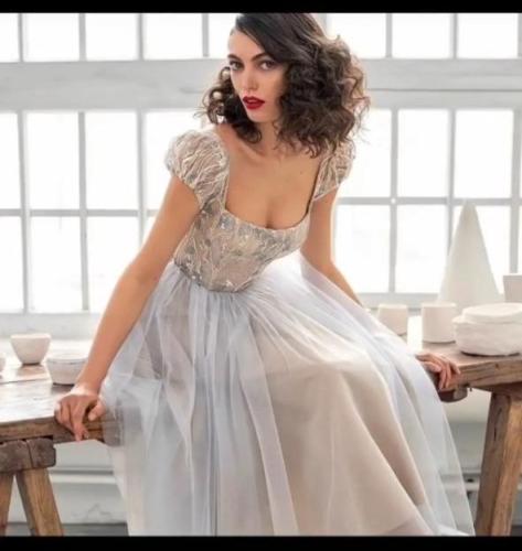 723 فستان سهرة ضيق باكمام منفوخة