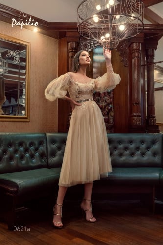 2100 فستان زفاف بتصميم على شكل حرف A مزين بالريش