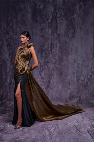 2104 فستان زفاف مكشوف الكتفين على شكل حرف A مع ديكور من الريش