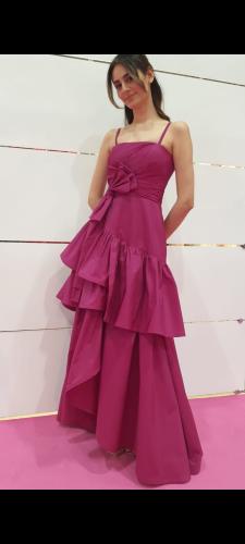 فستان حرير طويل ماكسي يصل إلى الأرض مع تفاصيل مميزة تشمل قصة صدر فريدة وجذابة وقصة الأقواس على الأكتاف التي تضيف لمسة رومانسية وأنثوية. الفستان بدون أكمام، مع فتحة ظهر كبيرة تضفي لمسة جريئة وجميلة، ويتميز بالشبكة الشفافة التي تظهر من خلالها البشرة بشكل أنيق. كما يتميز الفستان بفتحة من الأمام تصل إلى أعلى الركبة، مما يسهل الحركة ويضيف لمسة أنيقة وجذابة.