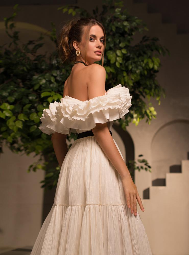 2100 فستان زفاف بتصميم على شكل حرف A مزين بالريش