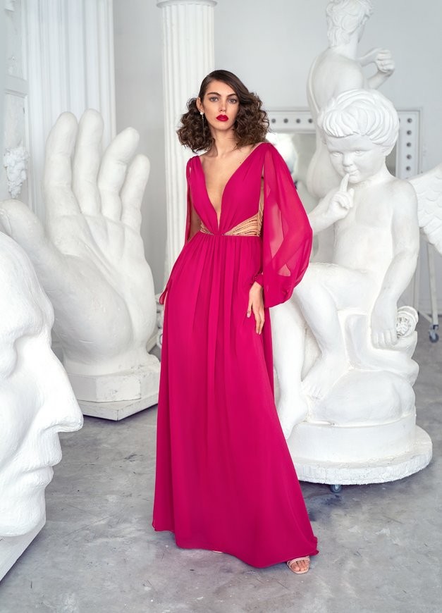 2101 فستان زفاف بتصميم على شكل A مع كتف واحد وأكمام كيب