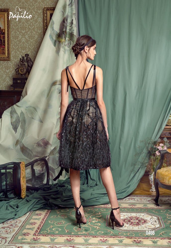 2104 فستان زفاف مكشوف الكتفين على شكل حرف A مع ديكور من الريش